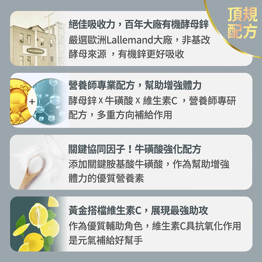 ➤ 酵母鋅+牛磺酸 補給好實在