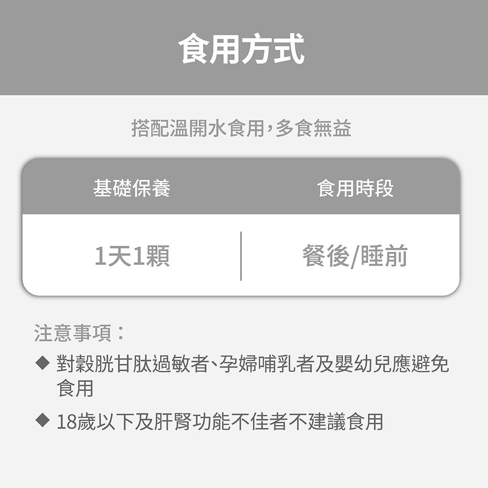 ➤ 每日1顆,飯後或睡前搭配溫開水食用