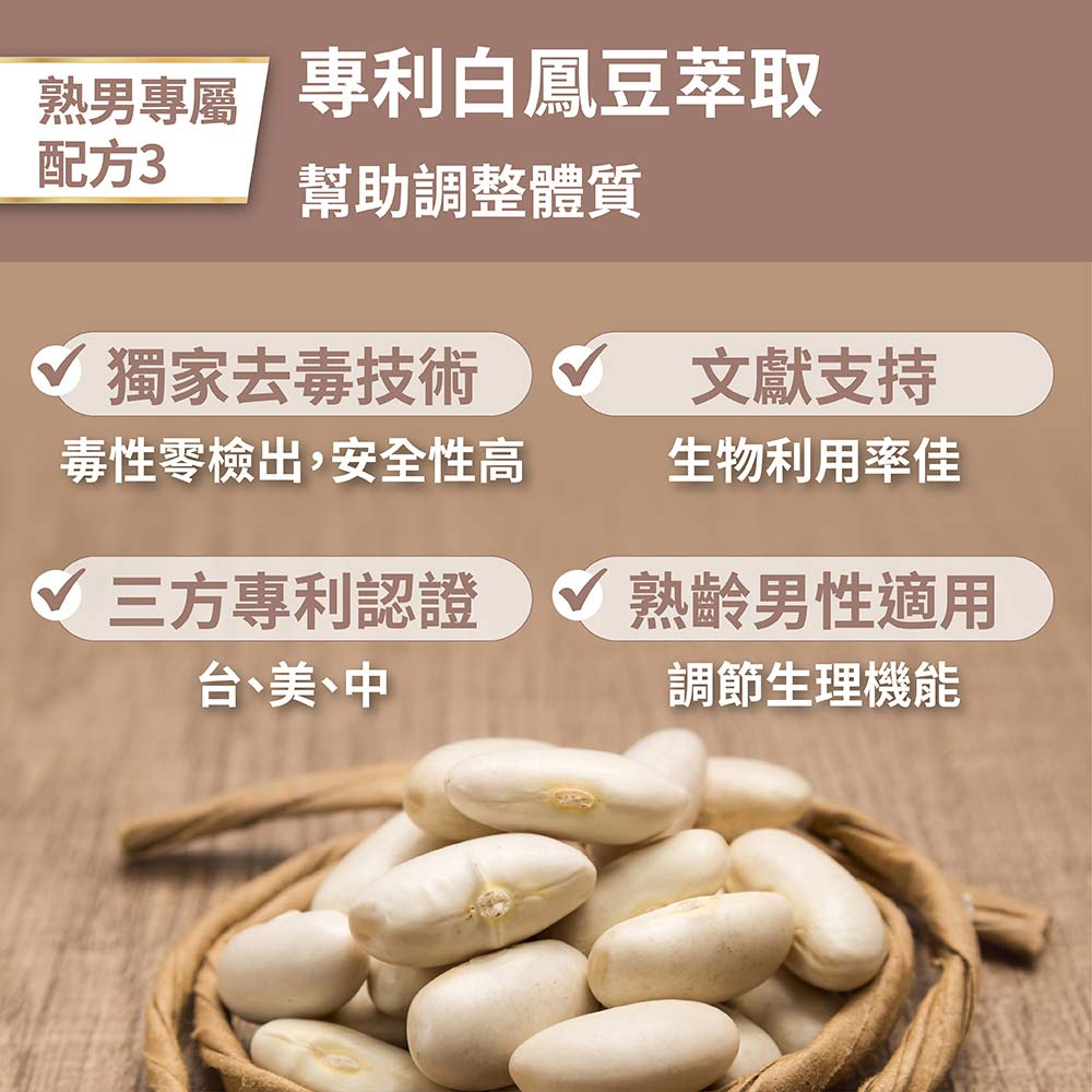 Q1.女性可以吃南瓜籽嗎?可以,這一配方雖然熟男為主要適合族群,但配方內容也很適合擁有相同需求的熟女以及產後婦女喔!我們使用植萃南瓜籽及茄紅素等天然原料,可以放心食用。Q2.南瓜籽要怎麼吃?睡前或餐後?日常保養每日2顆,加強保養4顆,飯後搭配溫開水食用。Q3.直接吃南瓜籽有用嗎?如果直接生食南瓜籽其實作用不大,市面上的南瓜籽多為油溶性,因此活性物質易於加工過程氧化產生油耗味,導致營養價值下降,影響產品穩定性,且有效成分尚不明確。而豐傑的專利南瓜籽是屬於全球珍稀水溶性南瓜籽來源,無雜質吸收速度快,能夠幫助調整體質、健康維持;若食用一般南瓜籽主要攝取到的是脂肪類營養素喔!Q4.孕婦跟小孩可以吃南瓜籽嗎?本產品適用於35歲以上的熟齡男女,18歲以下的青少年正常來說不需要補充喔!產後若無哺乳需求,可以補充來幫助調整體質、調節生理機能。Q5.如何挑選南瓜籽產品?選擇南瓜籽產品時需注意:品種來源、專利技術萃取。而豐傑使用的高濃縮萃取水溶性南瓜子膠囊,目前是市場的頂規與主流。Q6.素食可以食用嗎?專利南瓜籽+茄紅素的膠囊殼屬於動物膠質成分,素食者可以打開膠囊食用原料粉末。Q7.本產品中的白鳳豆是什麼?與白腎豆不同嗎?白鳳豆為幫助調節生理機能,主要是針對熟齡男女喔!而白腎豆屬於幫助促進新陳代謝,適合愛吃米麵的成人。---------------------------------------------------------------【使用方式】日常保養每日2顆,加強保養4顆,飯後搭配溫開水食用。【產品功效】攝護腺好朋友、幫助調節生理機能。高濃度萃取,多國專利男性配方、天然植化素茄紅素加成補給、全球珍稀水溶性南瓜籽來源、搭配多項專利成分效果更升級【產品特點】✔ 每日2-4顆,飯後搭配溫開水食用✔ 全球珍稀水溶性南瓜籽來源✔天然植化素茄紅素加成補給✔搭配多項專利成分效果更升級✔精選礦物鋅男性必備營養素✔ 南瓜籽高濃度萃取高保健✔ 熟齡男性保養【主要成分】專利南瓜籽萃取物、麥芽糊精、蕃茄萃取物(含茄紅素)、刀豆萃取物(專利白鳳豆)、葡萄糖酸鋅、專利黑麥花粉、硬脂酸鎂【商品規格】容量規格: 500毫克/顆;30顆/袋保存期限: 3年貨源: 公司貨產地: MIT劑型:膠囊【注意事項】1.本品含有堅果及其製品,不適合其過敏體質者食用。2.孕婦、哺乳以及肝腎功能不全者食用前應先諮詢醫師或營養師。3.不建議18歲以下食用。