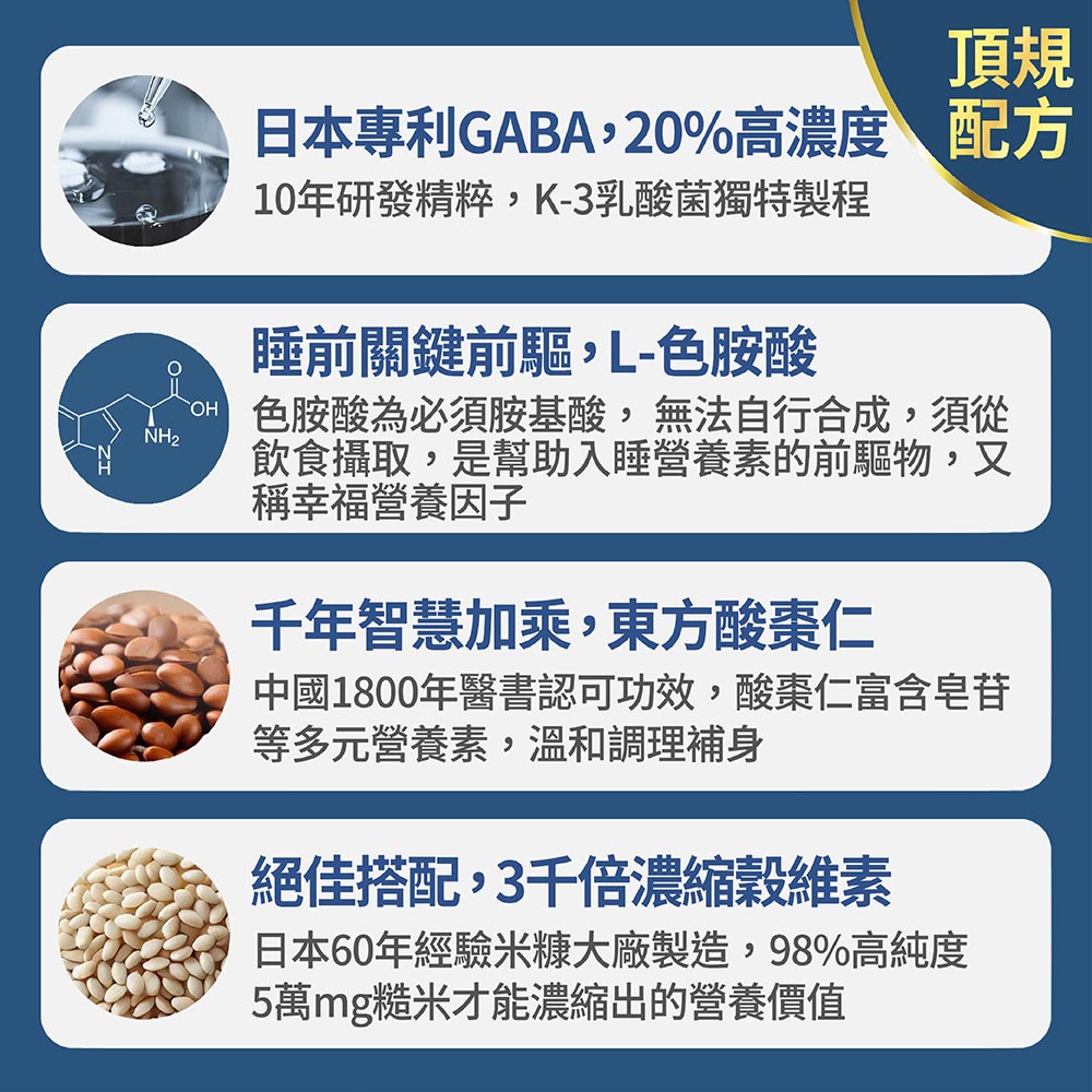 ➤ 採用專利GABA,幫助入睡