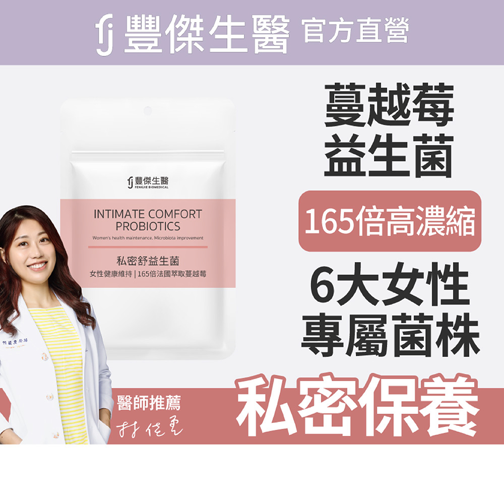 豐傑的「私密舒益生菌」同時也是「蔓越莓益生菌」,同時採用高濃度法國蔓越莓萃取、複合型益生菌!