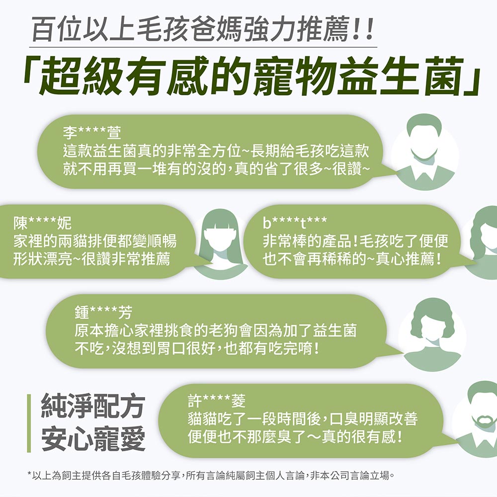 我們的成分天然,幼貓、幼犬都可以吃,離乳後,5個月大的犬貓,可以適量攝取益生菌。食用量依照重量調整即可。