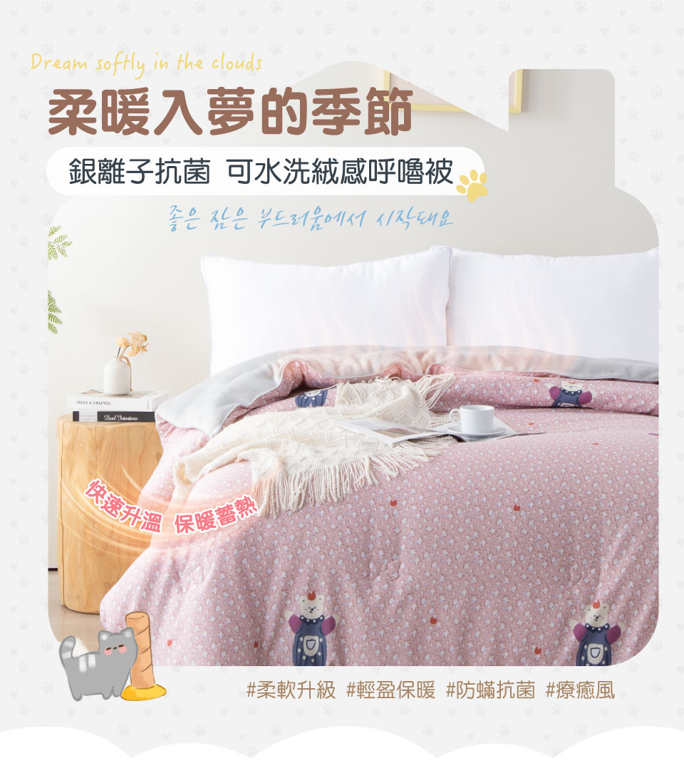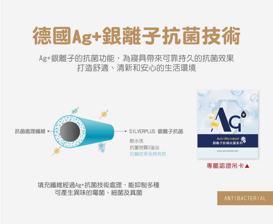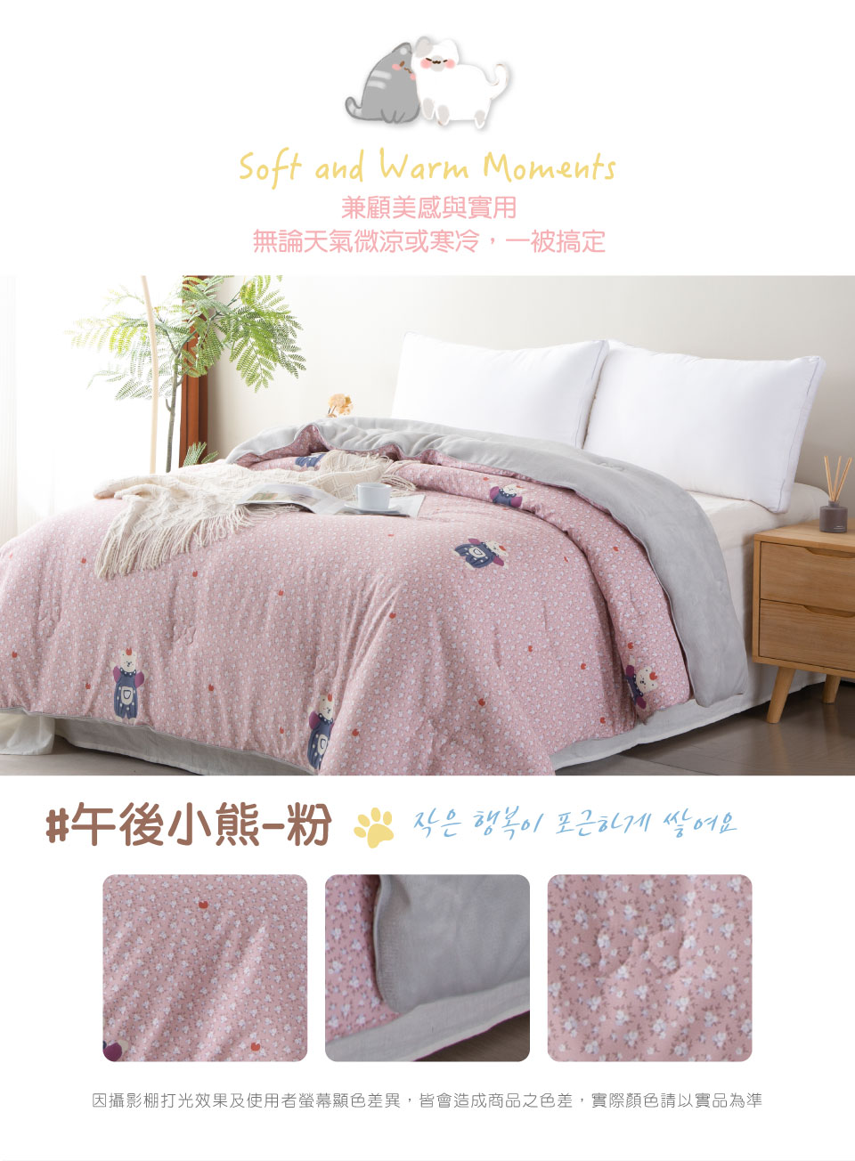 .材質: 上表布:100%聚酯纖維 .下表布:100%聚酯纖維(牛奶絨) .填充物:100%聚酯纖維(銀離子防蟎抗菌)
