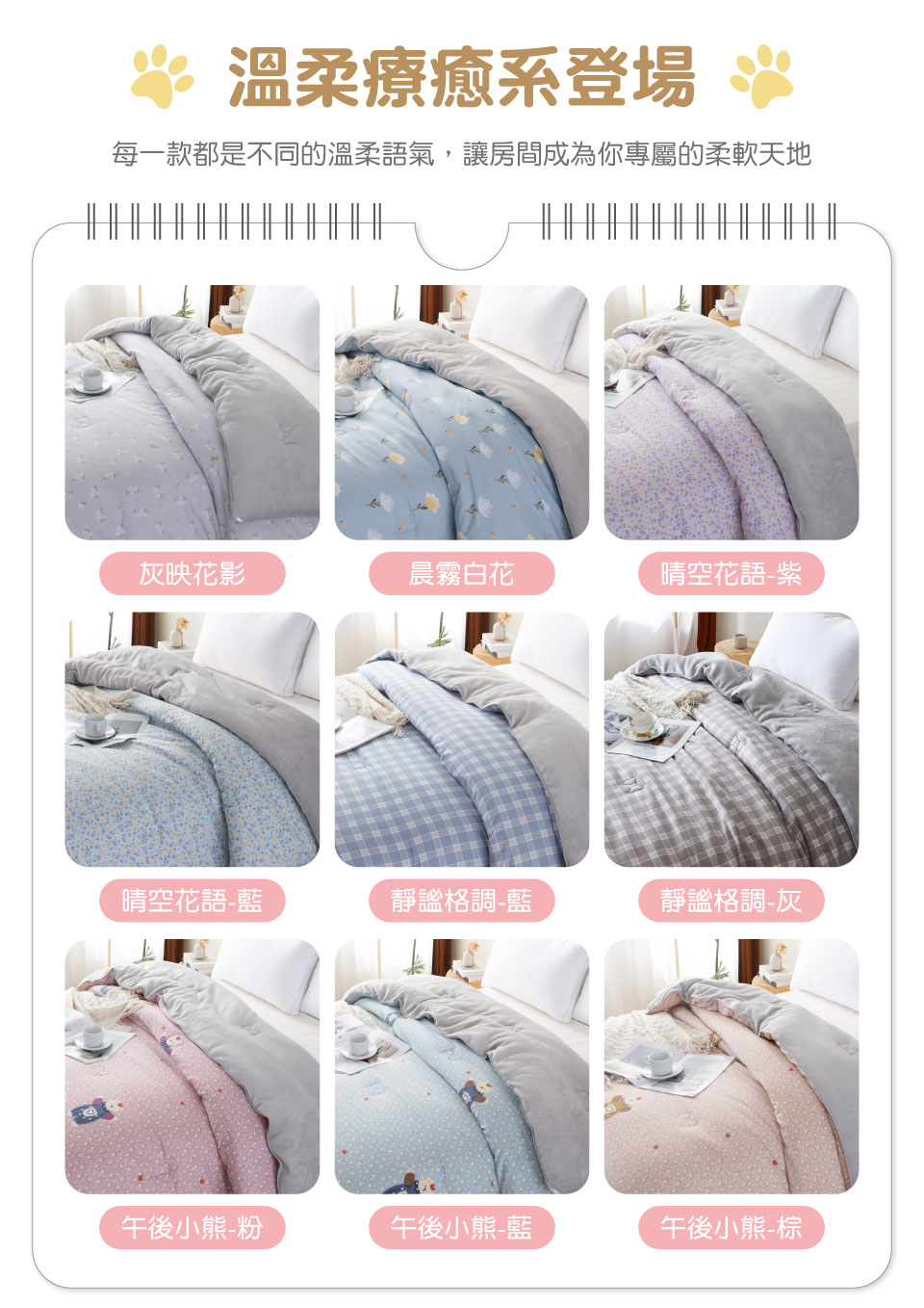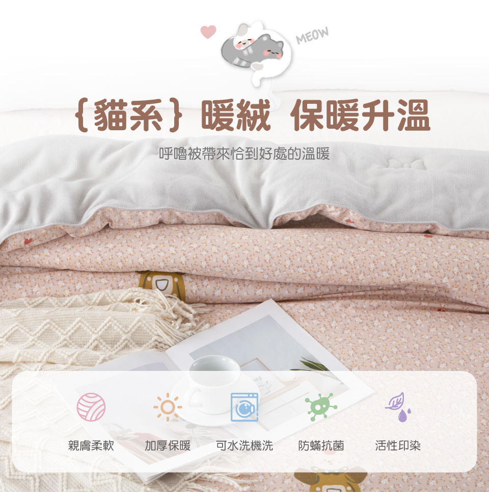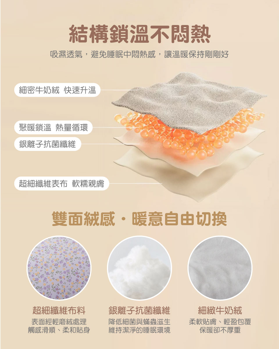 .材質: 上表布:100%聚酯纖維 .下表布:100%聚酯纖維(牛奶絨) .填充物:100%聚酯纖維(銀離子防蟎抗菌)
