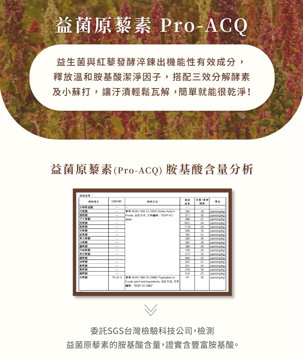 ■主要成分:益菌原藜素(Pro-ACQ)、碳酸氫鈉、蛋白質分解酵素、澱粉分解酵素、脂肪分解酵素、