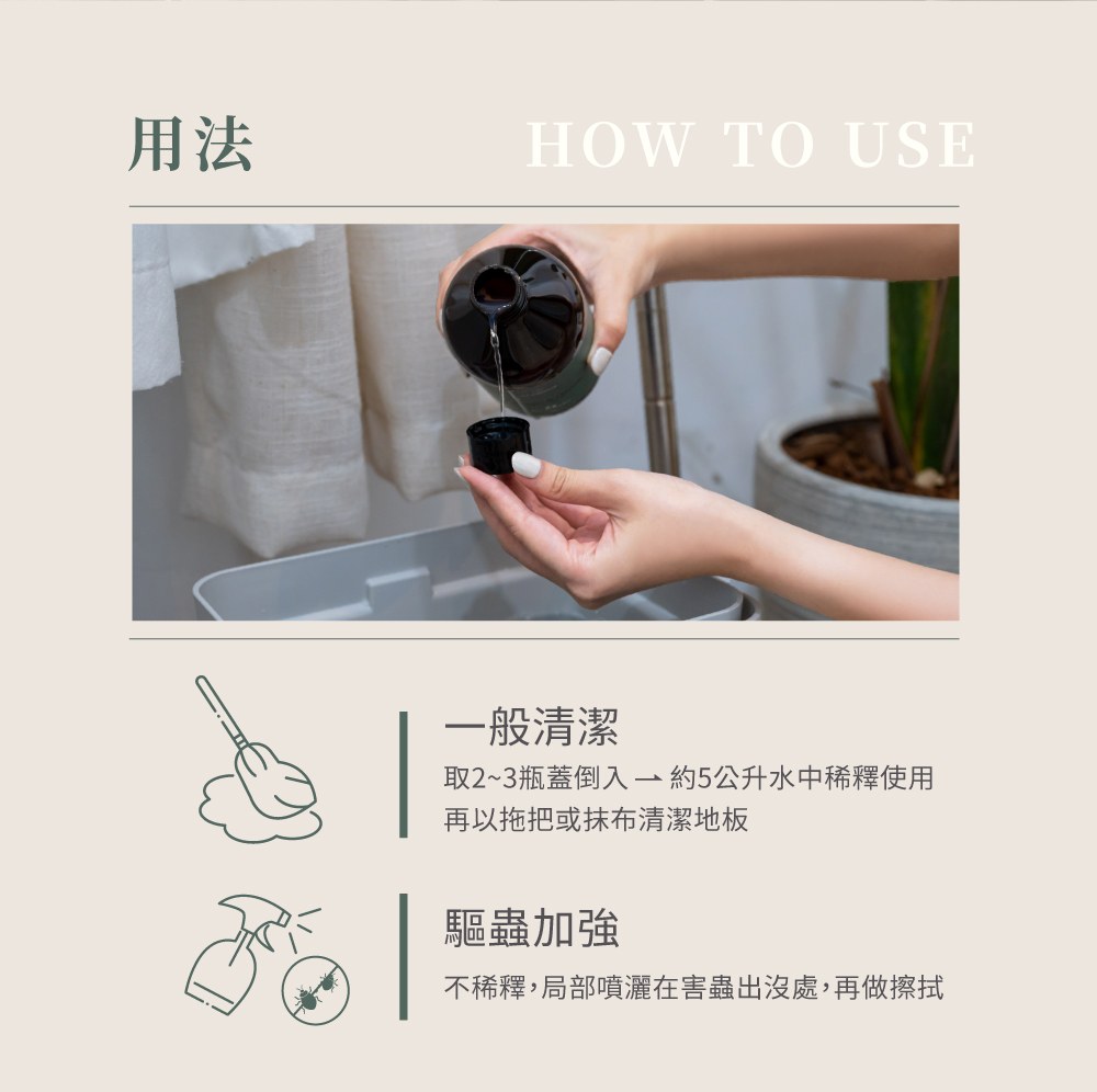 □驅蟲加強:不稀釋,局部噴灑在害蟲出沒處,再做擦拭。