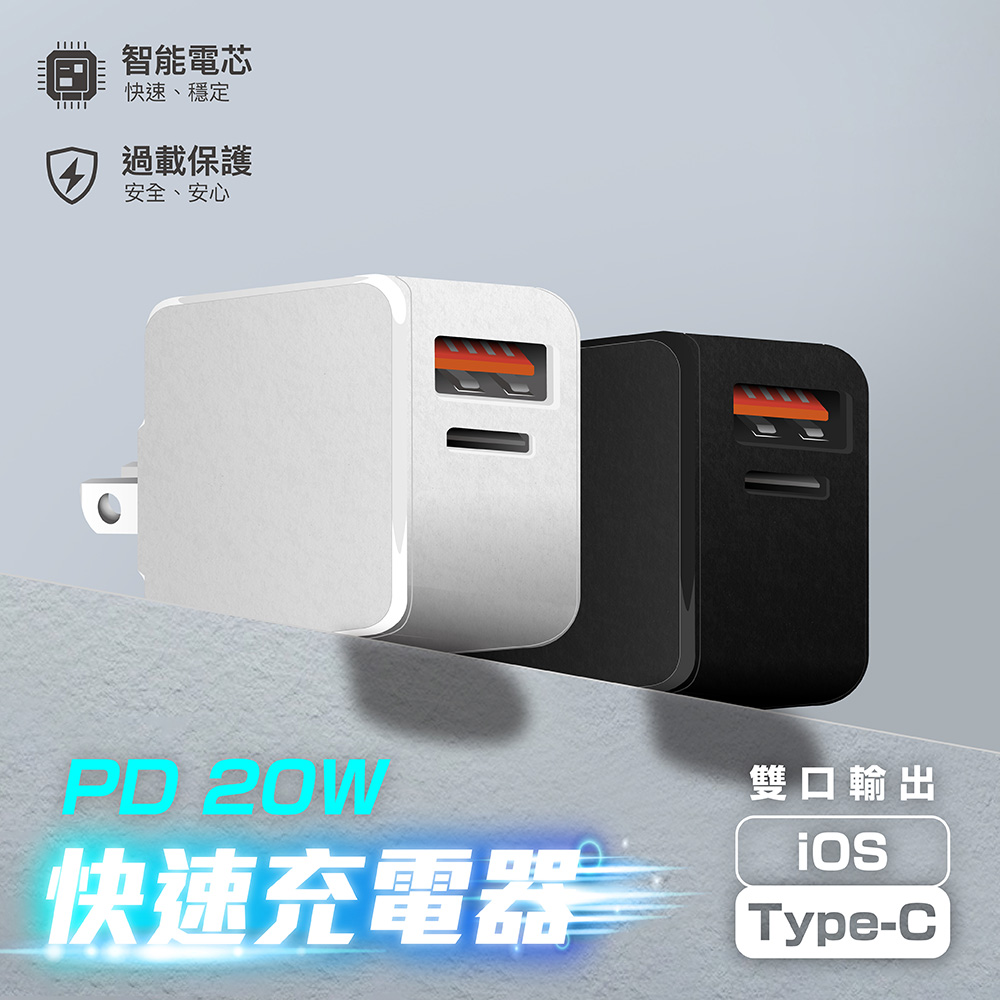PD20W 2孔快充頭 下單送Type-c充電線 (快充頭/快充/手機充電器/平板充電器/充電線)