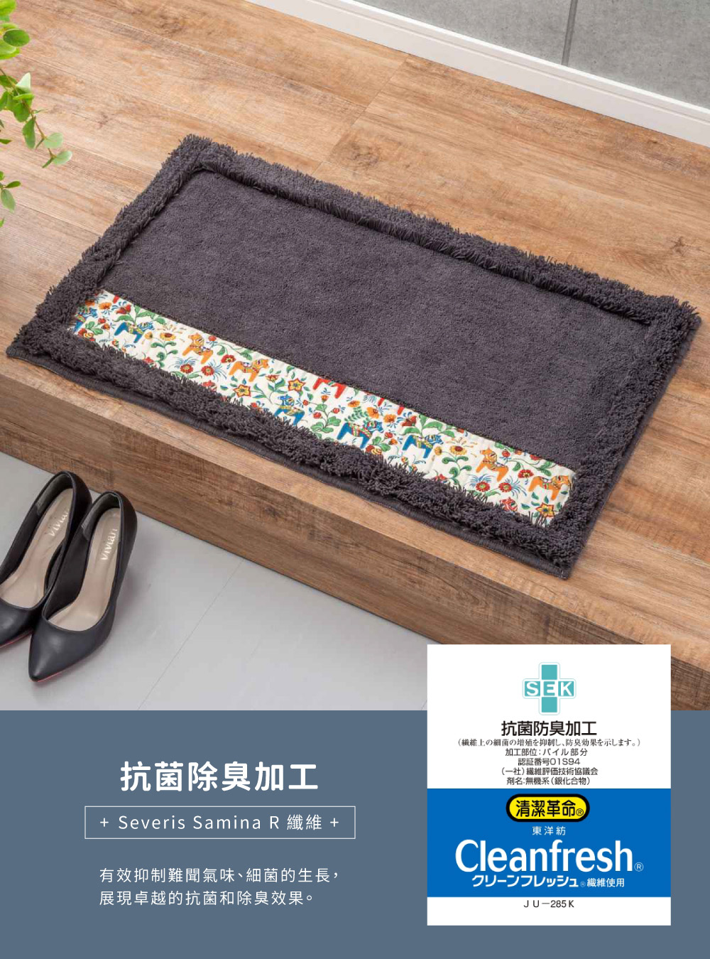 由於是鋪在腳下的地墊,為確保使用衛生,已經過抗菌除臭加工處理。同時吸水速乾機能的特性,讓地墊時刻保持乾爽。