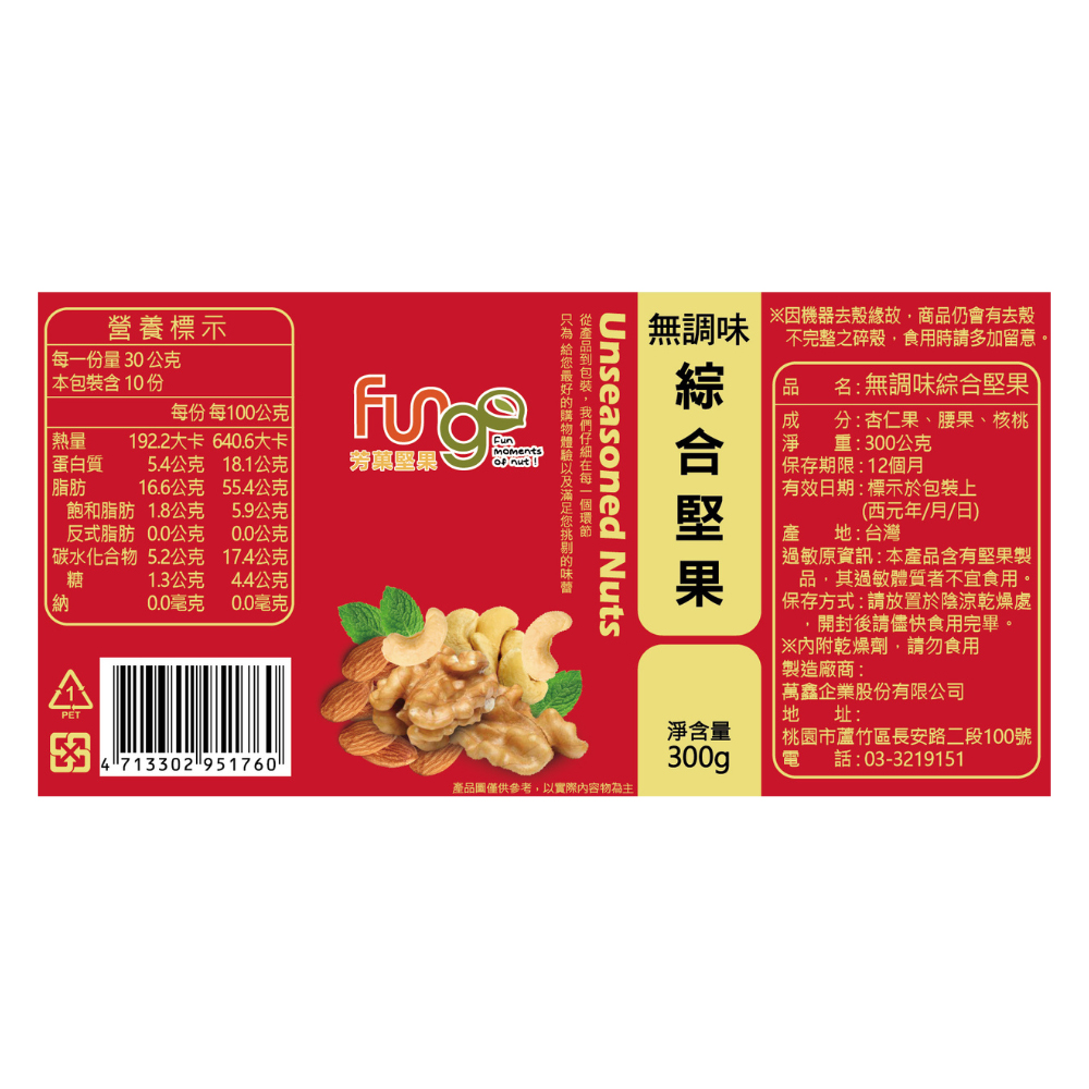 天然原味,風味純粹:精選多種優質堅果(如杏仁、腰果、核桃等),無任何調味,保留堅果原始香氣與自然甜味。