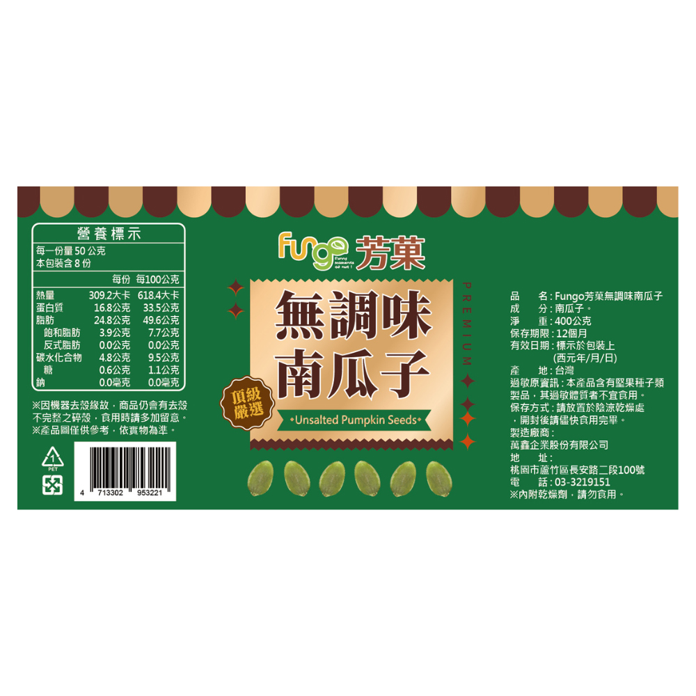 [Wanxin] Fungo Unsalted Pumpkin Seeds 400g