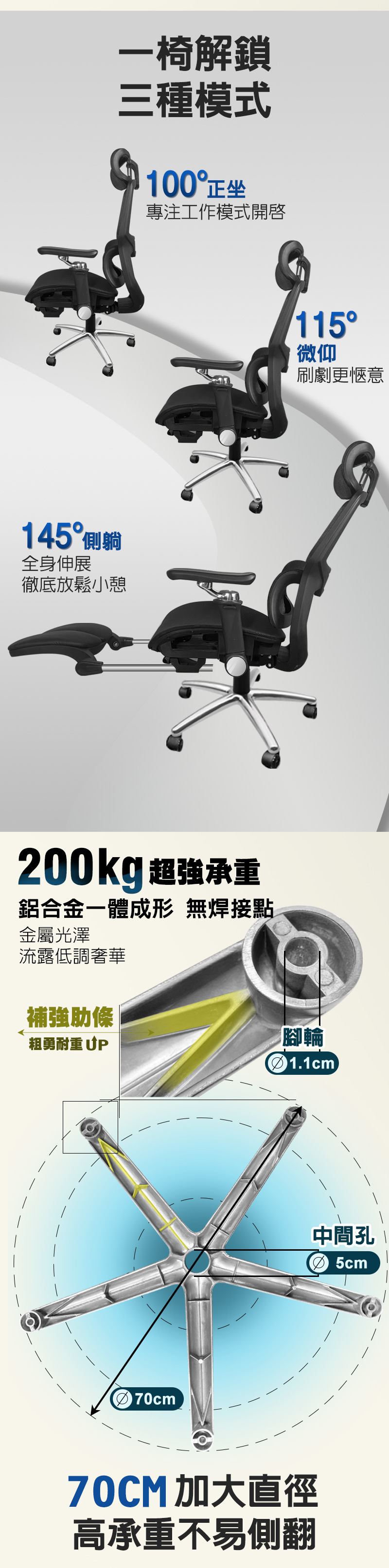 材質:座椅-彈性透氣網布、框架-塑膠、 腳架-70公分鋁合金
