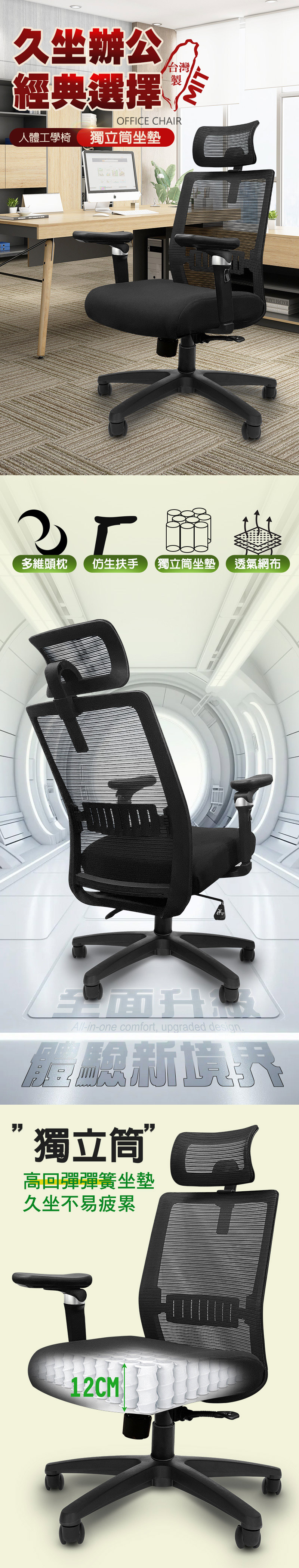 G+ Home No-Assembly Taiwan-Made Ergonomic 4D Breathable Chair (C6828)