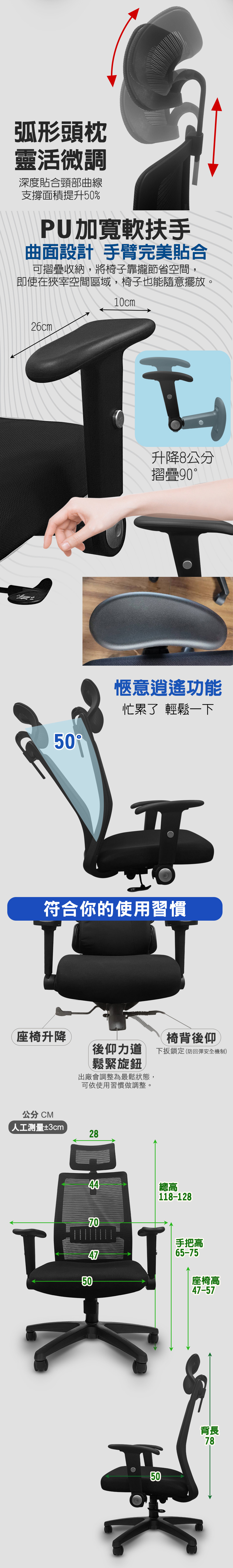 G+ Home No-Assembly Taiwan-Made Ergonomic 4D Breathable Chair (C6828)
