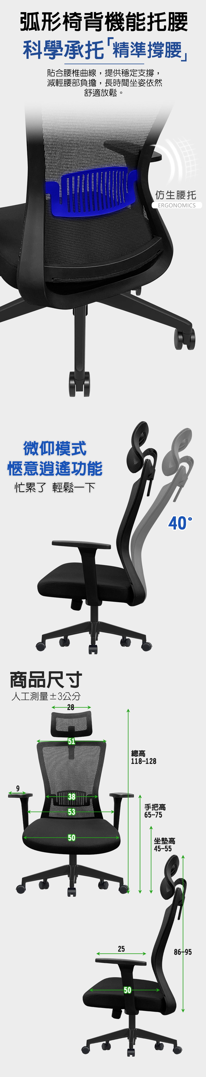 配置: 椅背-彈性透氣網布 坐墊-彈性網布(PU泡棉) 腳架-尼龍五爪腳架 椅輪-全黑帶亮圈(雙輪單軸承含飾蓋) 材質:彈性透氣網布、PU扶手、尼龍 組裝方式:無須組裝、拆封可用 乘載重量:靜壓約100公斤 尺寸:詳情請見商品內文圖 產地:台灣 注意事項: ◆大約1~3個工作天內送貨到府(不含假日)。 ◆購買時請注意商品尺寸大小測量是否合適您的辦公空間再進行下單,避免一切退換貨之手續影響您的權益。 ◆簽收商品前,請先留意貨物是否完整,若有明顯破損損壞等狀況,不簽收並拒收;若已簽收不拆包裹拍照保留狀況聯繫客服處理相關事宜。 ◆辦理退貨商品必須是全新狀態且包裝完整,商品退回若包裝不完整造成運送損傷將會影響你退貨權限,請特別注意。 ◆賣場商品圖因電腦螢幕設定差異會略有不同,請以實品顏色為準,敬請見諒! ◆商品皆由台灣師傅手工製作範圍稍差距為正常。 ◆商品免組裝,拆封即可使用,滾輪也是裝好的,運送過程中會因推椅子上下貨車滑動而沾上灰塵是正常的,並非瑕疵品!只要擦拭過就沒問題喔! ◆貨運認定之困難配送區域(山區、鄉鎮、所有公家機關、學校、醫院、百貨公司、世貿中心、服務區),不做配送;貨下一樓,不做上樓層等附加運送。"有配送地點疑慮,建議下單前與客服聯繫確認"