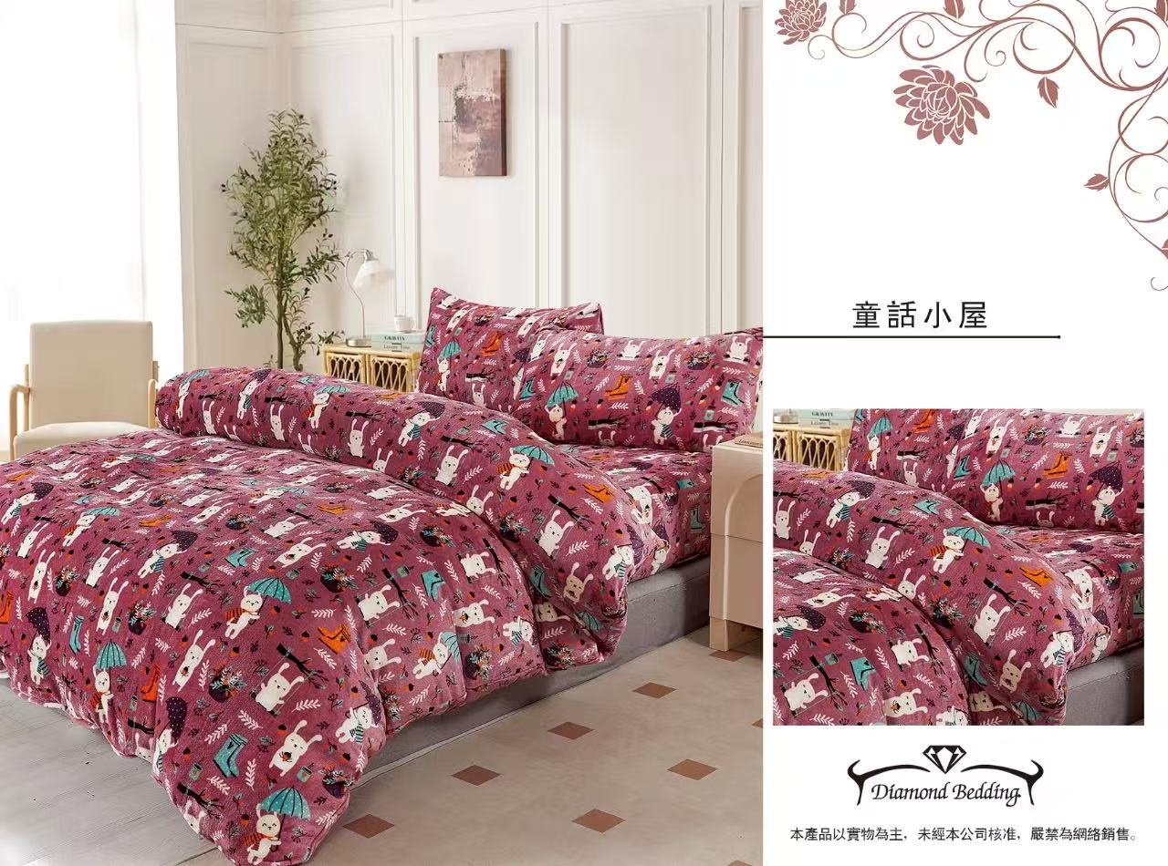 【Galatea葛拉蒂】法蘭絨冬季雙人特大床包四件組 童話小屋