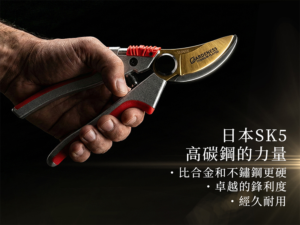 台灣製造工藝,採用日本 SK5 高碳鋼搭配防沾黏塗層,能有效減少樹液殘留,保持刀刃乾淨滑順,