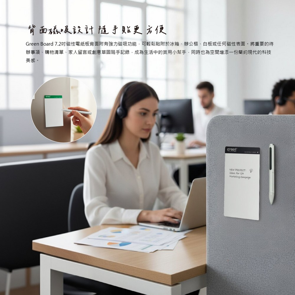 7.2 吋磁性電紙板輕巧、環保又多用途,適用族群相當廣泛。