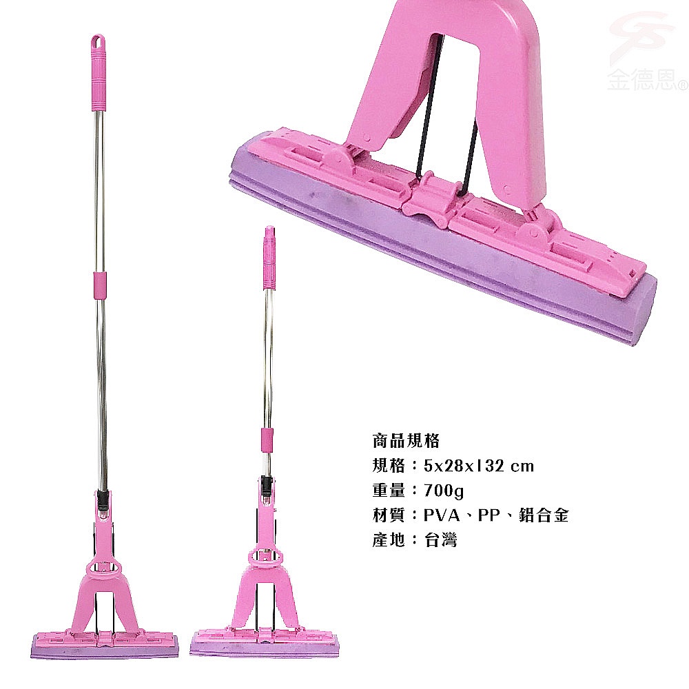 GS MALL 台灣製造 手拉式折合拖把 132x28cm 膠頭拖布 拖把 手拉式拖把 折合拖把 清潔拖把 膠頭拖把