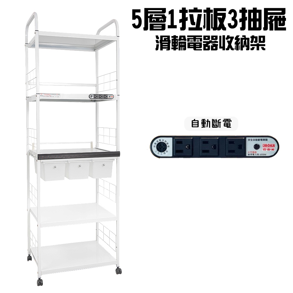GS MALL 台灣製造 5層滑輪3抽屜1拉板插座電器架 收納架 電器架 層架 電器收納架 收納架 層板架 儲物架 層架