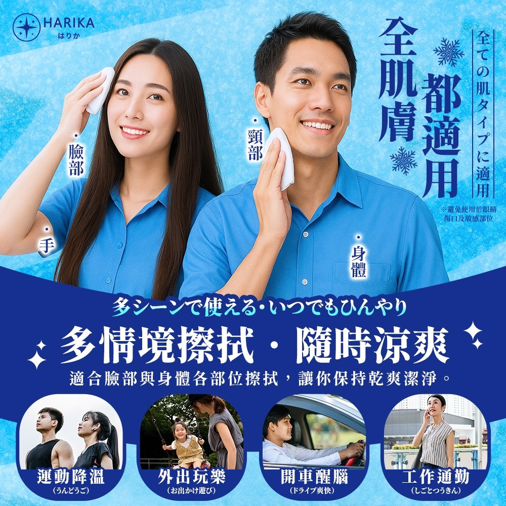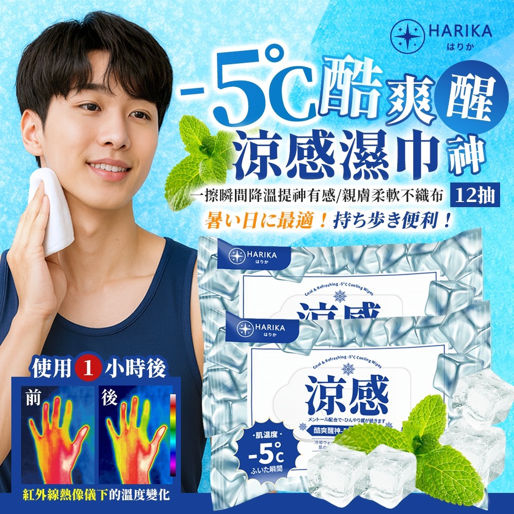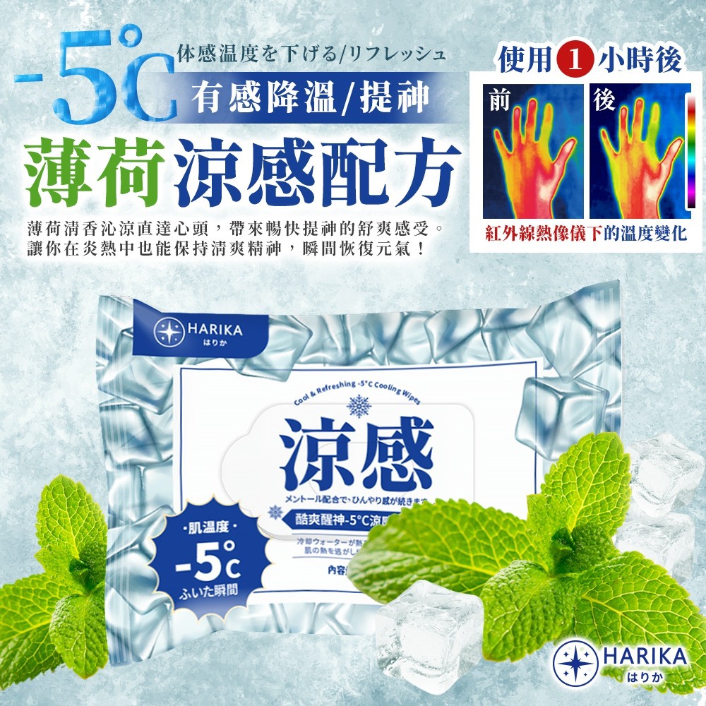 Japan 【HARIKA】Cool & Refreshing -5°C Cooling Wet Wipes 12 Sheets × 10 Packs/Box × 40 Sets (Total 4800 Sheets)