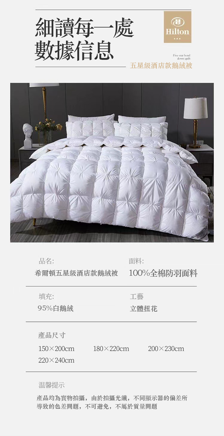 Hilton White Goose Down Comforter for Winter 180*220CM