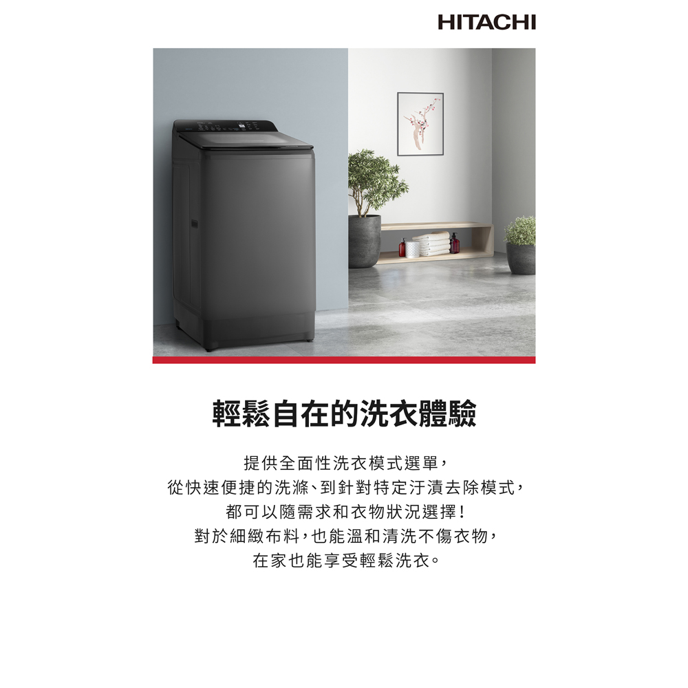 HITACHI 13.5kg Narrow Upright Inverter Washing Machine Quiet Gray LTLH3MVW0TGG