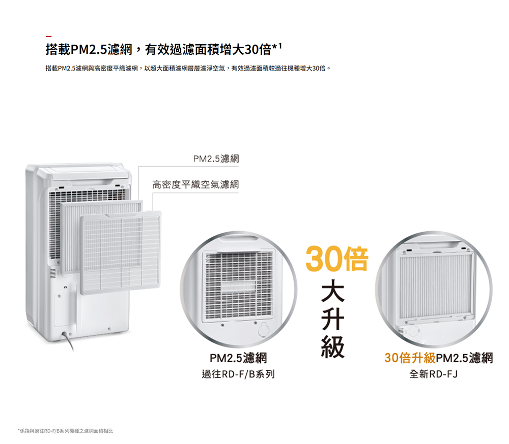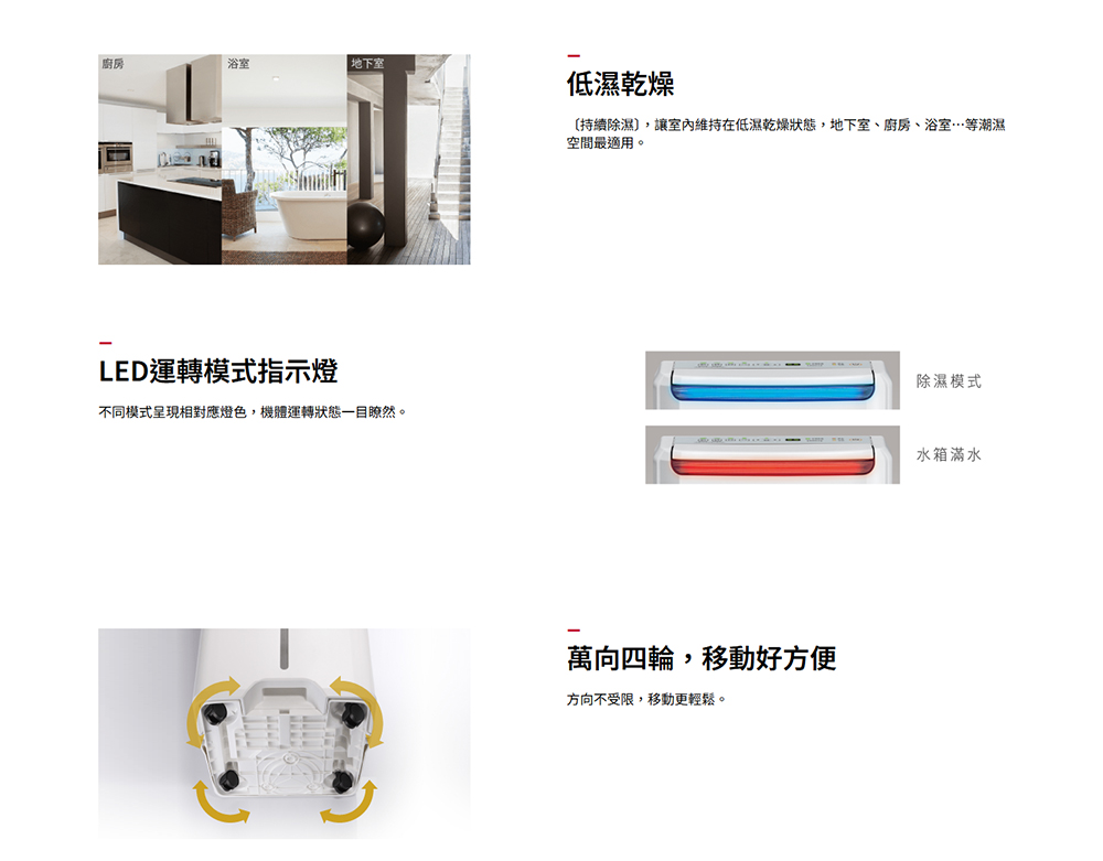 【商品名稱】HITACHI 日立一級能效 9公升 舒適節電除濕機 RD-18FJ 璀璨白【原產地】台灣【型號】RD-18FJ【顏色】璀璨白【節能/除濕】 .除濕能力:9 (公升/日) .能源效率等級:第1級【清淨】 .高密度平織空氣濾網:★ .PM2.5濾網:★【貼心設計】 .風向控制:超廣角上吹+前吹 .滿水自動停止運轉:燈號 / 警示聲 .滴水靜音 / 連續排水:★ .底部滑輪:四輪萬向移動 .自定濕度 / 濕度顯示:★ .快速乾衣:★ .定時運轉(h):1~12 h .LED運轉模式指示燈:藍(除濕)/紅(滿水) .濾網清掃提示:★ .手機APP遙控:另 購 (RC-W04XE)【安全】 .迴轉式壓縮機:★ .停電自動復歸 / 自動除霜:★ .多項防護裝置:★【其他】 .LED面板顯示/ 操控:LED觸控式面板 .R-134a冷媒 / 高效DC馬達:★ .MIT微笑標章:★ .環保標章:申請中 .節能標章:★ .適用室溫範圍:5~35℃ .電源:單相/110V/60Hz .水箱容量:高/低水位二段可調(高:約5公升;低:約3.8公升) .外型尺寸 寬×高×深(mm):365x625x235 .製品重量(kg):14.5【商品保固】 .3年保固【BSMI商檢字號】R41010【商品特點】 .舒適節電 .低濕乾燥 .快速乾衣#HITACHI #HITACHI 日立 #一級 #能效 #9 #公升 #舒適 #節電 #除濕機 #RD18FJ #璀璨 #白