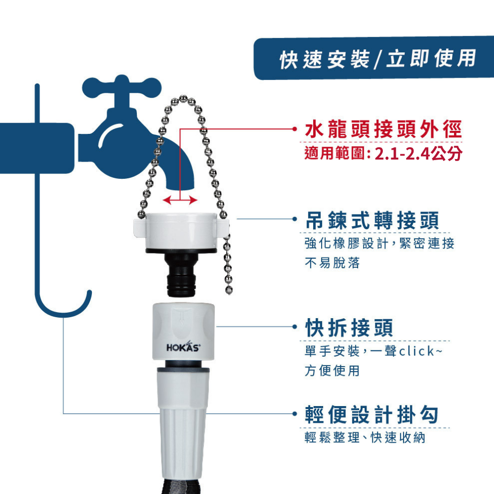 【HOKAS】 6分吊鍊式接頭(2.1~2.4cm)