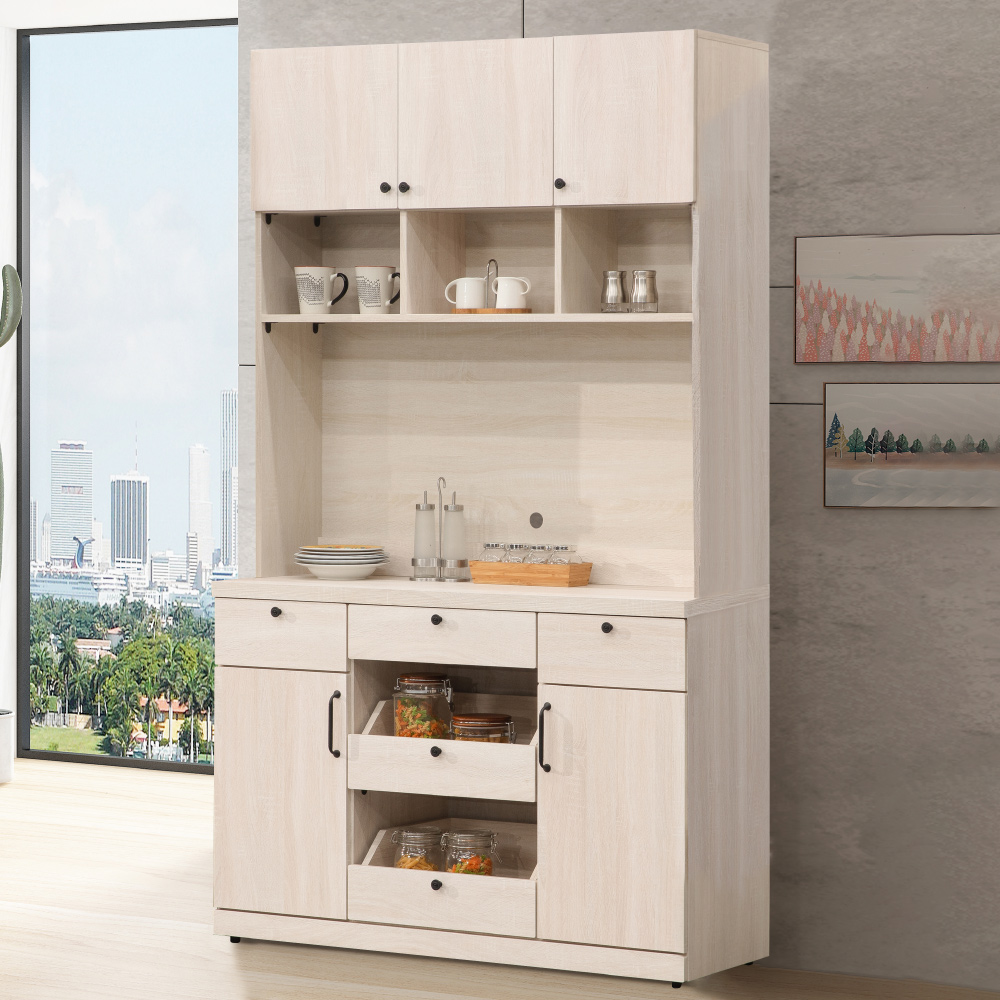 ◆清新雪松色,簡約美觀◆油壓緩衝後鈕,不怕夾傷手◆半開放收納盤,餐盤一目了然◆免自行組裝,專人配送到府◆廚房、餐廳收納好幫手◆可當餐櫃、高櫃、電器收納櫃、廚櫃◆五抽屜+門櫃收納尺寸:寬 121 x 深 40 x 高 201 公分材質:高級木心板顏色:雪松色產地:台灣誤差值:因人工丈量,尺寸±5%內為正常範圍