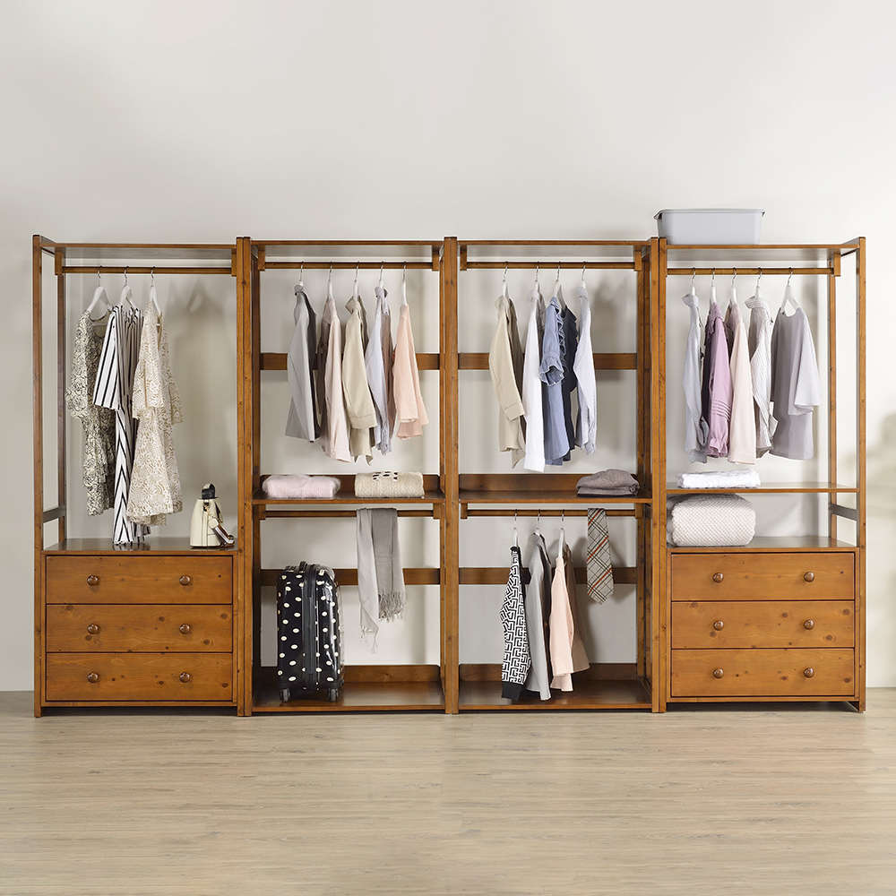◆開放設計,降低壓迫感◆實木材質,品質佳◆六抽屜設計,收納小物◆專人配送,到府組裝◆典雅鄉村風格◆可放臥室、服飾店整體配件:三抽櫃 x 2 + 雙吊櫃 x 2尺寸:寬 324 x 深 55 x 高 185 公分材質:實木顏色:胡桃色產地:越南誤差值:因人工丈量,尺寸±5%內為正常範圍