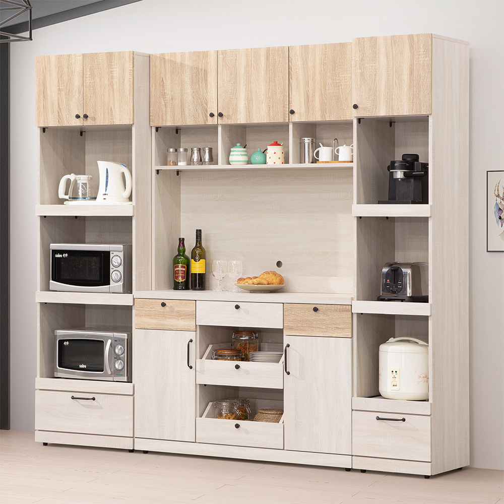 ◆雙色拼接,簡約美觀◆三件組合,可以需求更換位置◆半開放收納盤,餐具一目了然◆免自行組裝,專人配送到府◆廚房、餐廳收納好幫手◆可當餐櫃、高櫃、電器收納櫃、廚櫃◆六拉盤+七抽屜收納尺寸:寬 221 x 深 40 x 高 201 公分材質:高級木心板顏色:雪松+梧桐色產地:台灣誤差值:因人工丈量,尺寸±5%內為正常範圍