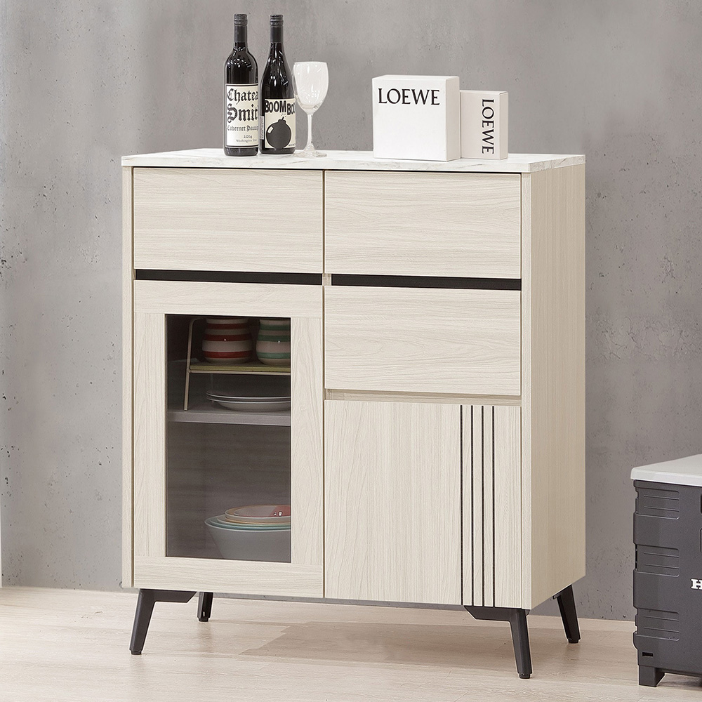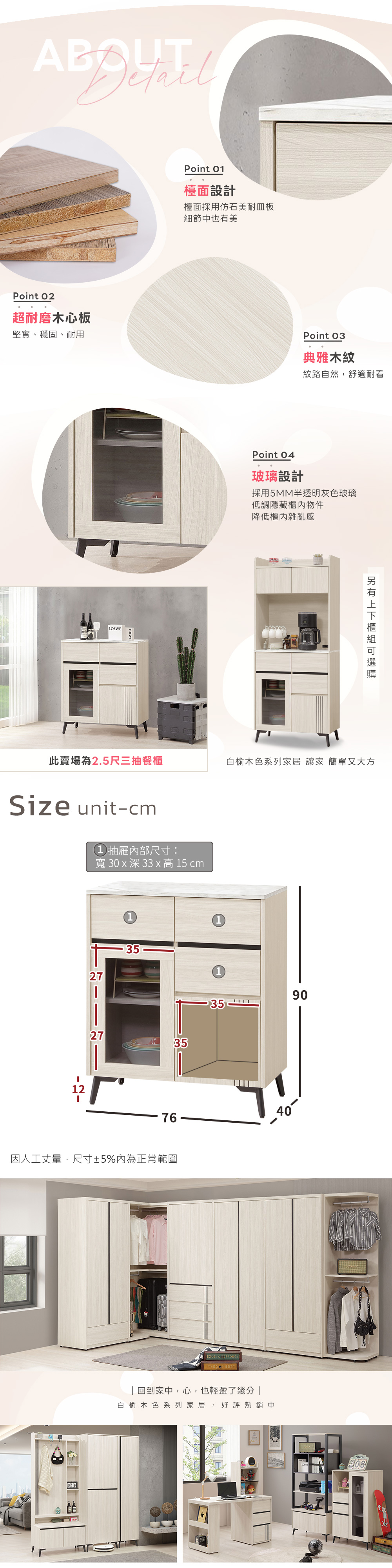 ◆白榆現代、英倫風格◆檯面採用仿石美耐皿板設計◆採半透明灰色玻璃◆三抽屜收納空間◆免自行組裝,專人配送到府尺寸:寬 76 x 深 40 x 高 90 公分材質:高級木心板+仿石美耐皿板顏色:白榆木色產地:台灣誤差值: 因人工丈量,尺寸±5%內為正常範圍