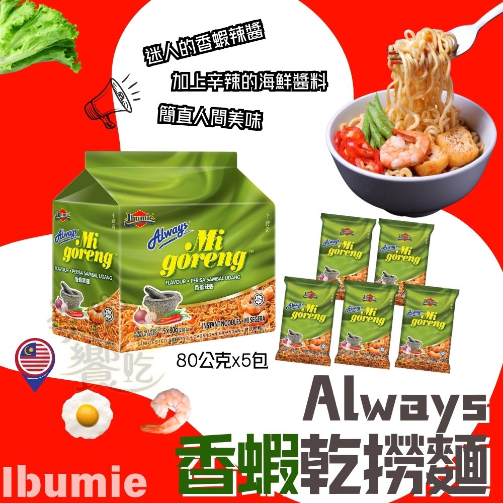 道地東南亞風味 超夯炒泡麵 always 乾撈麵經濟包(80G*5p) 馬來西亞原裝進口 (原味/香蝦辣醬/泰式酸辣) 口味任選 [8袋免運]