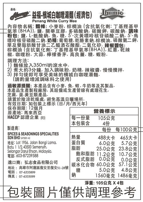 Ibumie 益福檳城白咖哩湯麵(經濟包)(105g*4P) 濃郁椰奶香氣 超夯白咖哩泡麵 [3入免運組]