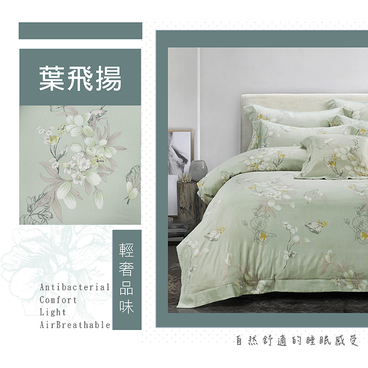 Indian新科技天絲吸濕排汗雙人加大四件式床包兩用被組-葉飛揚