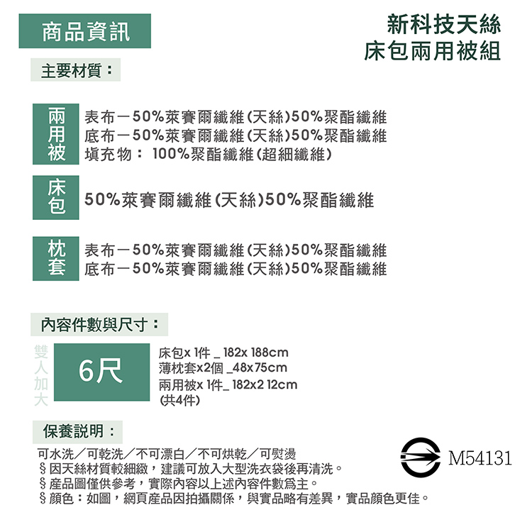 表布:50%萊賽爾纖維(天絲)、50%聚酯纖維