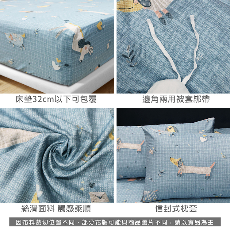 加大6尺-床包x1件(182x188cm)、薄枕套x2個(48x75cm)、兩用被x1件(182x212cm)