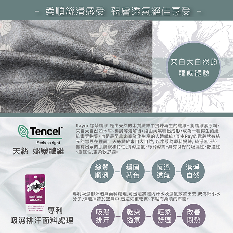 表布:50%萊賽爾纖維(天絲)、50%聚酯纖維