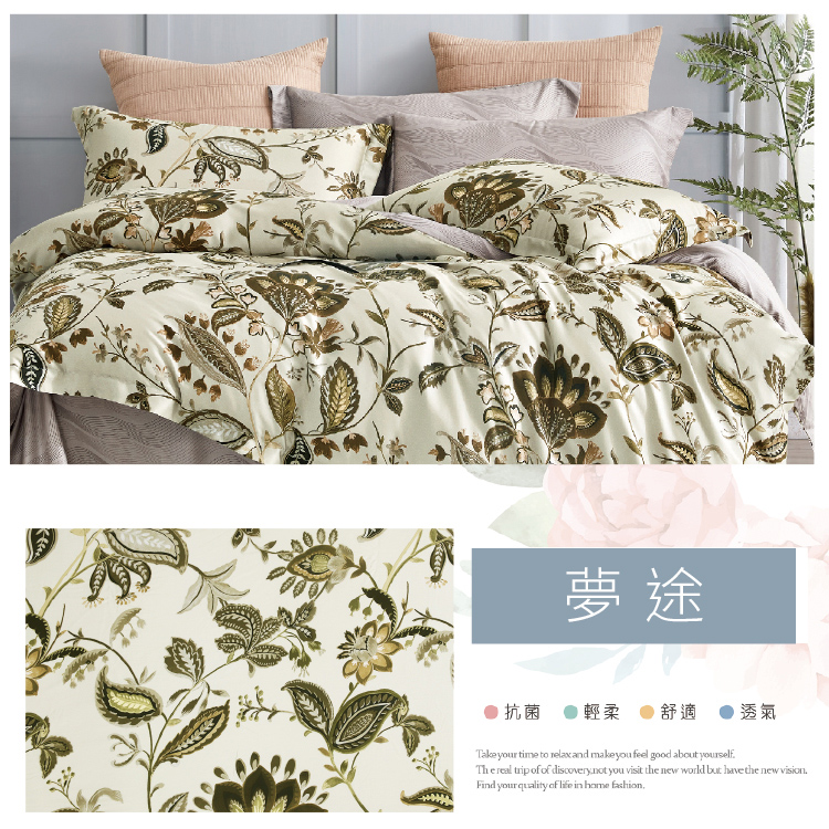 100%純天絲雙人四件式兩用被床包組-夢途