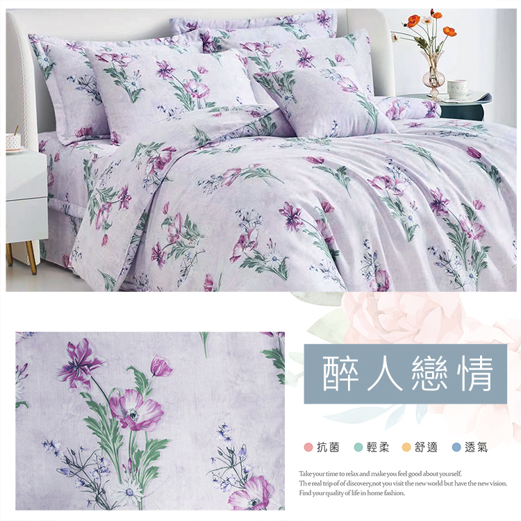 純天絲雙人加大七件式床罩組-醉人戀情