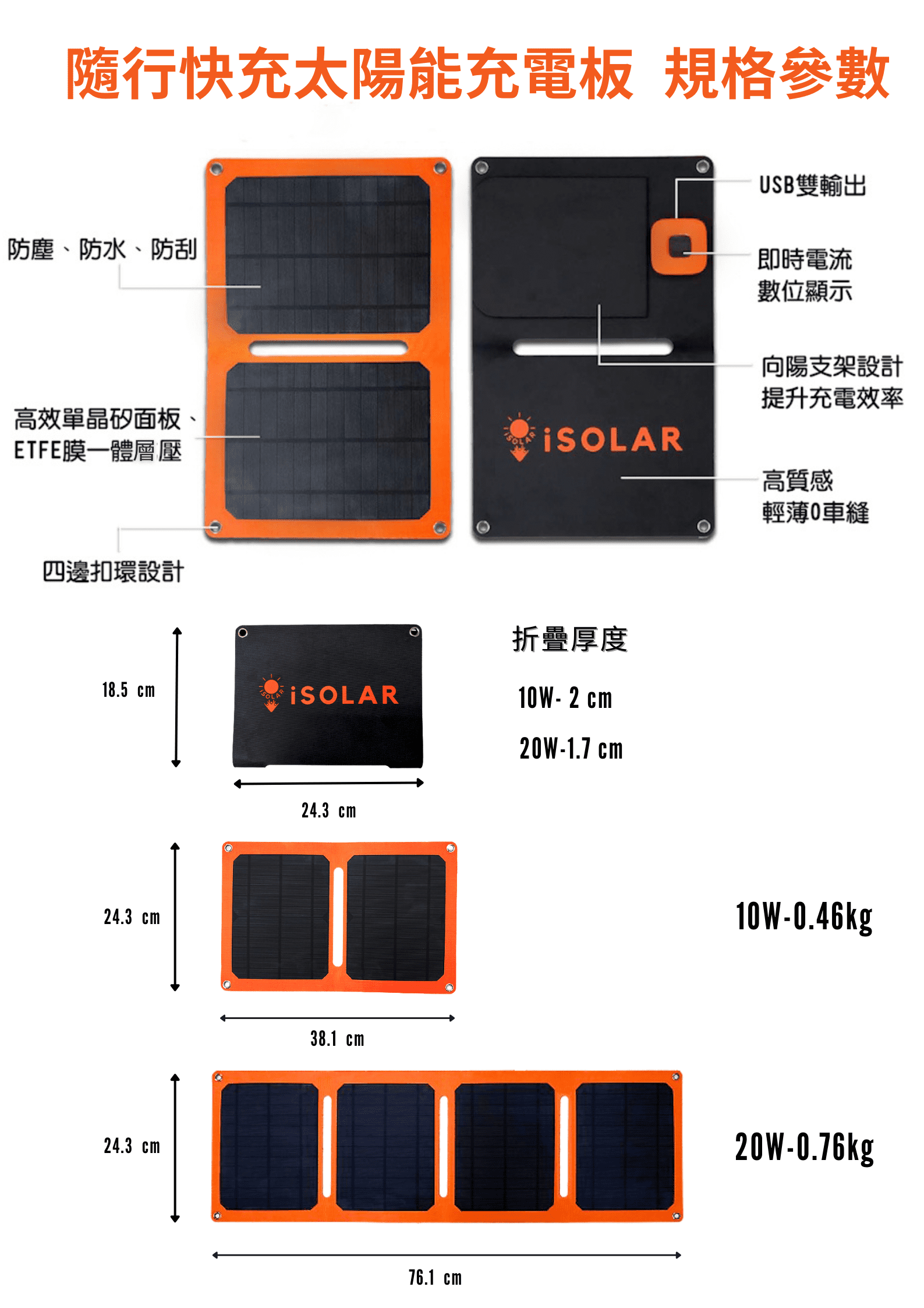 只要有這一款20W折疊式太陽能板您就可以藉著無限的太陽能光來對您的小3C產品充電!