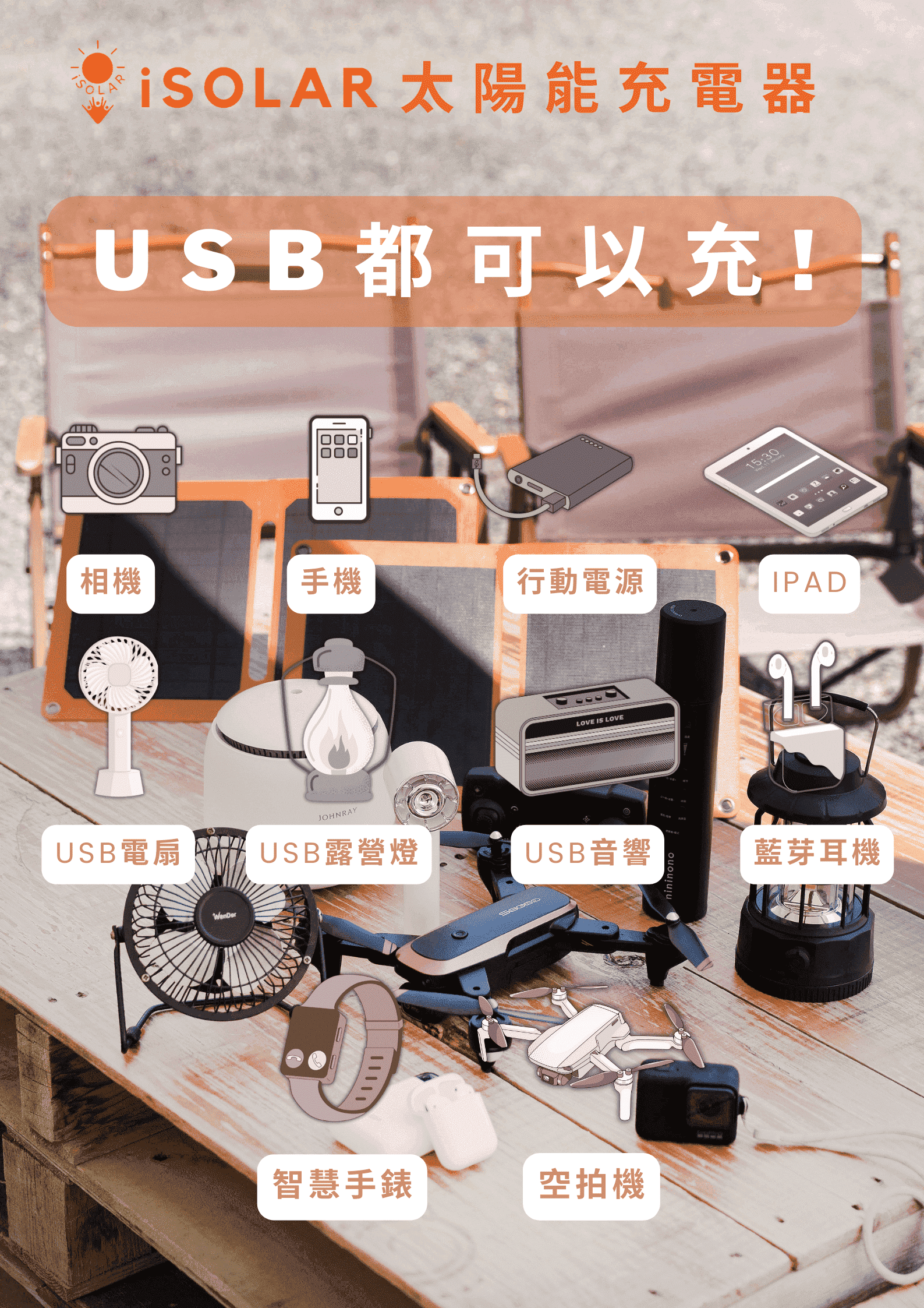 只要有這10W折疊式太陽能板您就可以藉著無限的太陽能光來對您的小3C產品與行動電源充電!