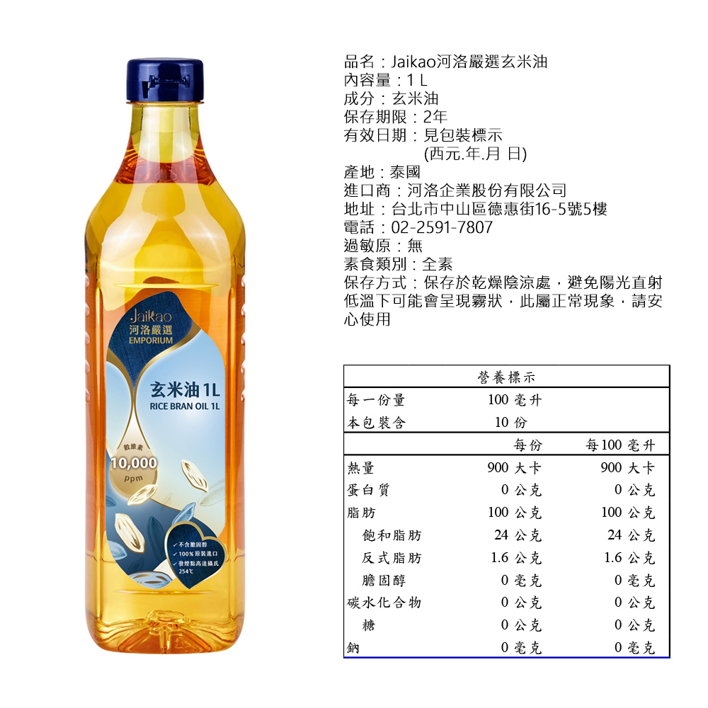 ●Jaikao 河洛嚴選玄米油 1L x 12瓶 /箱購