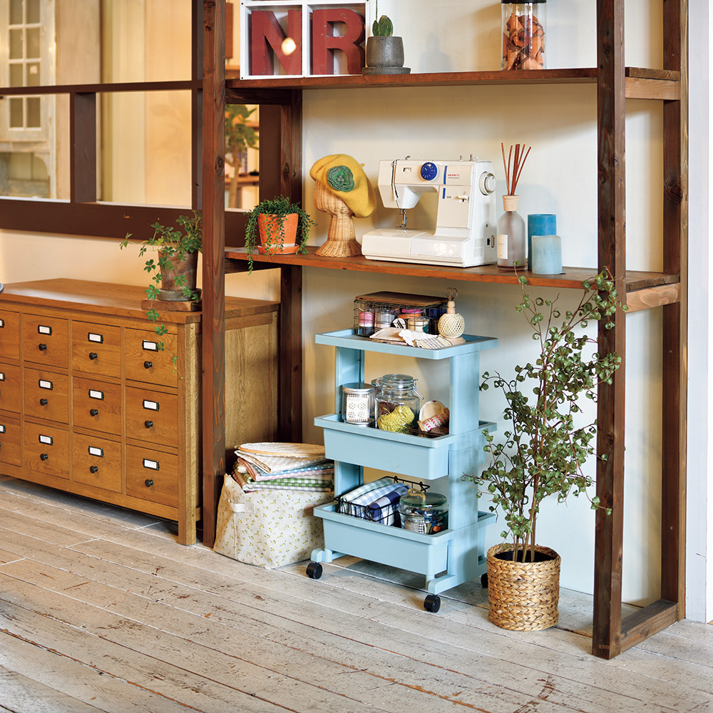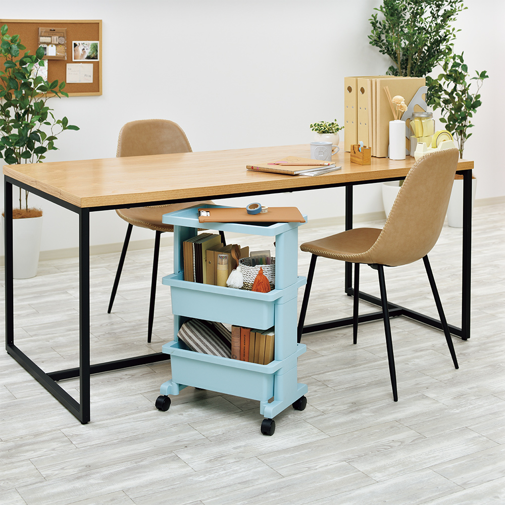 【JEJ ASTAGE】Japan-Made Multifunctional 3-Tier Utility Cart (Top Shelf Design / Storage Cart / Organizer Cart) – Blue