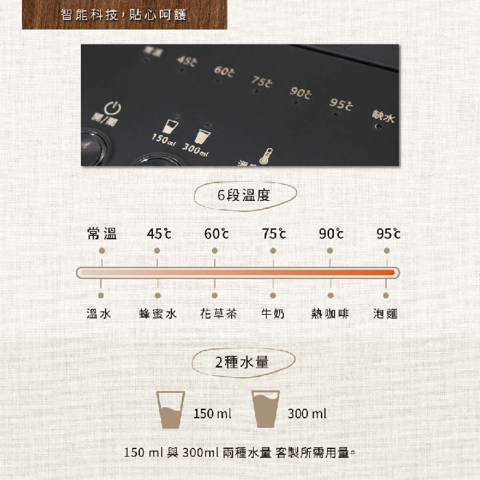 多段溫度選擇,精準控制水溫,無論是沖泡咖啡、茶飲或蜂蜜水,都能完美呈現風味。