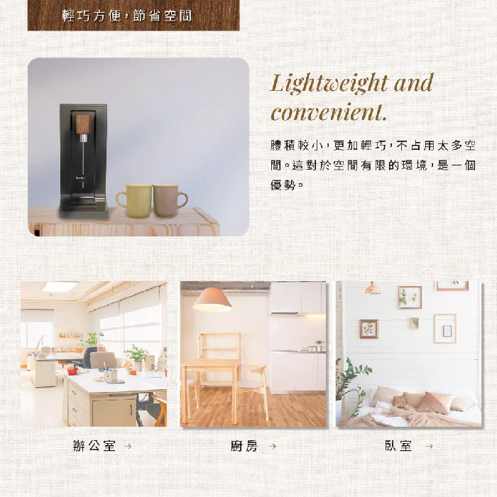 輕巧機身設計,不佔空間,輕鬆融入各種居家風格,為您的生活增添便利與品味。