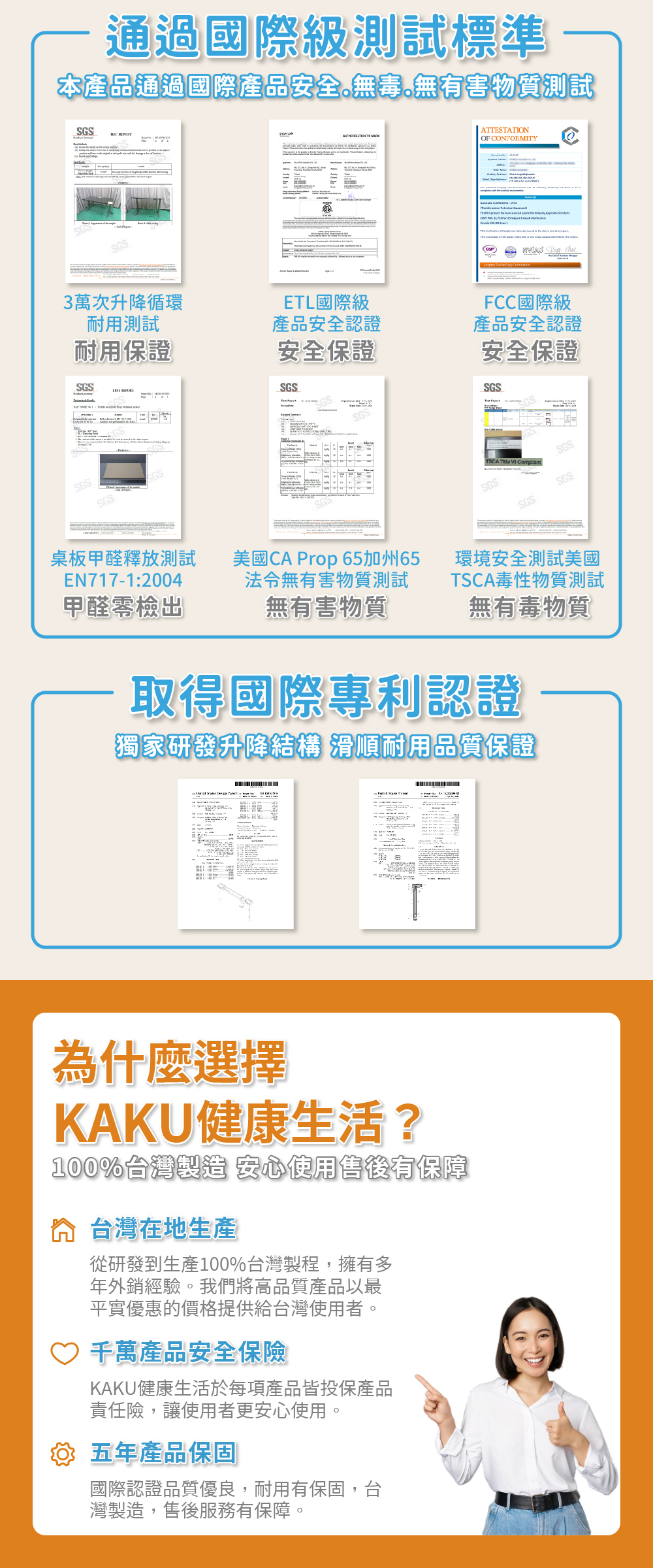 尺寸 寬 135 x 深 72 x 高 76-119 cm 載重 動態最大安全平均載重 90 kg 靜態最大安全平均載重 136 kg 產品重量 36.4 kg 適用電壓 110V 升降動力 日本 MABUCHI 24V 雙馬達 材質 桌板 P2級板材 零甲醛耐磨美耐皿板 厚度 2.5 cm 桌架 無重金屬粉體烤漆塗裝 產地 100%臺灣製造 包裝規格 箱號1 寬 160 x 深 84 x 高 8 cm / 22.6 kg 箱號2 寬 111 x 深 30 x 高 19 cm / 19.9 kg