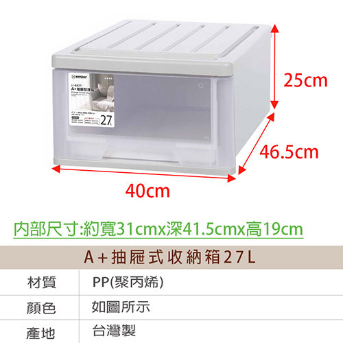 《真心良品》KEYWAY聯府 A+抽屜式收納箱27L-1入