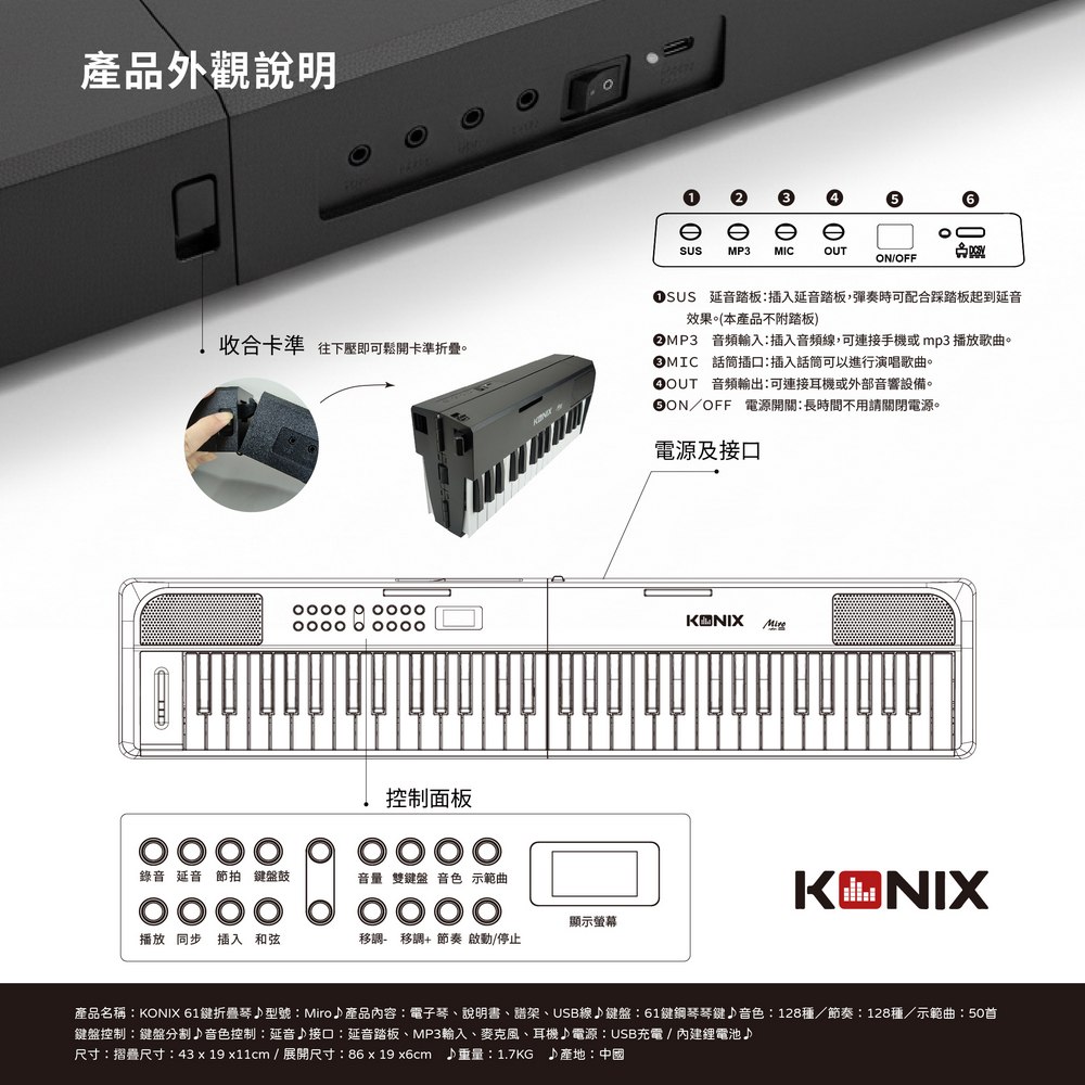 【KONIX】61鍵折疊琴 Miro 摺疊鋼琴