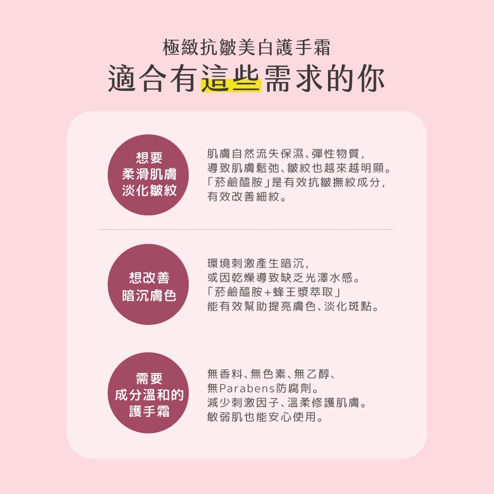 極緻抗皺美白護手霜-蜜桃60g 一瓶五大特點